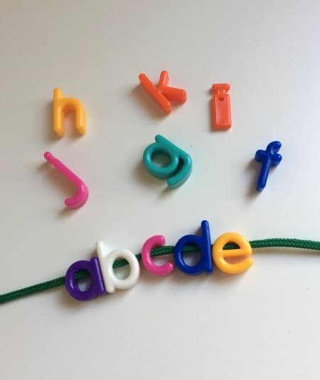 There are many ways to use your alphabet beads to help your child develop components for reading,